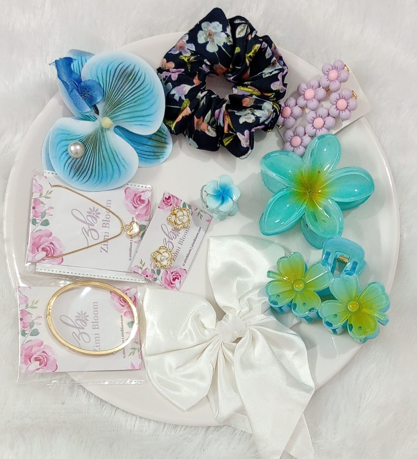 Add a touch of charm to your look with the Zimi Bloom Blue Floral Hair & Jewellery Combo Set.